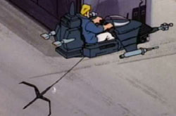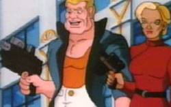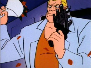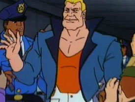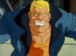 Name: Berzerko (Real Name unknown) History: An unintelligent buffoon with more guts and guns than brains, Berzerko is Big Boss' nephew, a fact that delights him to no end and proves to be an endless frustration for the Big Boss himself. Does not know how to stay out of trouble, and when trouble arrives (as it always does) his only viable solution in his mind is violence and gunfire. A thug, a punk, and a highly dangerous individual. Distinguishing Features: Flat top blonde haircut and a look on his face that is both vapid and insane. Often laughing at his own jokes, firing weapons indiscriminately and wearing an open blue shirt that went out of style in the last century. Always carrying deadly weapons. |