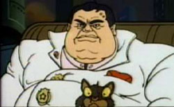 Name: Brandon "Big Boss" Babel History: Big Boss' history in Empire City is a long and storied one, which has grown in legend more than in fact. Suffice it to say, he is one of the most powerful men in Empire City and the underworld leader of a vast majority of the criminals that pass through Empire City's streets. His finger is on the pulse of the city's backstreets and alleyways, and nothing happens in the criminal world without his knowledge and without his say-so. Distinguishing Features: Big Boss is a very large man, but is incredibly fast and agile for a man of his stature. He wears a large white suit with buttons fashioned from the badges of those who dared challenge him. He is quite often followed by his trusty assistant Squeaky Clean and always carries his weasel. He has a cybernetic left hand that he is not at all afraid to use for his personal gain. |