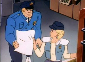Name: Tina "Mainframe" Cassidy History: Tina Cassidy is a rookie for Empire City PD and along with Donny "Hardtop" Brooks are the two junior members of the C.O.P.S. team. Officer Cassidy's knowledge, though, far outweighs her experience level, and her amazing expertise with computer technology as consistently proven to be a viable asset to the force. She is proficient with computers like no other and her assistance helped thwart one of Big Boss's most notorious schemes, thus B.P. Vess proudly invited her to be a full time member of the C.O.P.S. Distinguishing Features: Mainframe's age betrays her experience, and she is intelligent far beyond her years. Still, her young girl appearence is pretty out of the ordinary for such an elite group. She can always be found in front of a computer terminal with her baseball cap on, either preparing for, or solving the Crooks' latest caper. |
