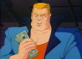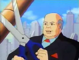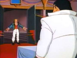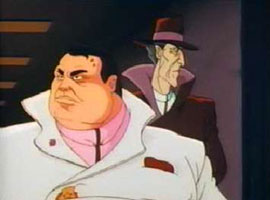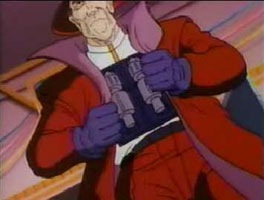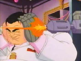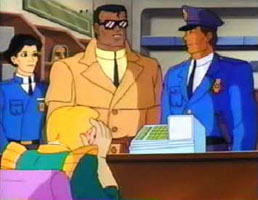 Episode Name: The Case of Berzerko's Big Surprise Episode Synopsis: We start off with Squeaky Clean making a surprise visit to Berzerko's secret hideout inside an amusement park in Empire City. Squeaky stumbles into a trap and some of Berzerko's cronies capture him, but Squeaky reveals he's just there to announce Big Boss' birthday, and gives him a list of what he wants. Berzerko's first stop is a costume shop/party store where he buys a bunch of masks...he gives these masks out to his buddies, then they turn around, go back in, and rob the place blind. Bullet-Proof and Mirage are the COPS on the scene, and they interview the shop owner to find out exactly what happened. They start showing him mugshots and ask for identification, and it doesn't take long for him to point out Berzerko. We also find out that Berzerko stole the World's Largest Balloon while he was there as well... Meanwhile, Berzerko and his clowns have infiltrated an manufacturing plant and are stealing onion dip straight from the conveyer belt, but Big Boss' grocery list for his birthday party slips right out of Berzerko's pocket, and a worker scoops it up, giving it to the COPS. Bullet-Proof and Mirage go through the list, and figure Berzerko's throwing a party, which will be the perfect time to possibly nab all Crooks at once. The next item on the list is a birthday cake, so they put out an APB on all bakeries in Empire City. Bullseye and Sgt. Mace, flying in an Air Raid helicopter, spot one of Berzerko's men on stilts, stealing a cake from a second floor window...they immediately give chase. The crook on stilts drops off the cake to a fellow criminal in the sewer system and tries to escape, but gets hit by a car, and ends up dangling from a traffic light. But the daring criminal slips from the traffic light, down the manhole and the criminals start to escape, but Bullseye puts out a bulletin to all COPS, giving them the coordinates. Mirage is staking out one of the exit drains and sees Berzerko and his punks slip out, hop in a dune buggy and take off...she is undercover, and makes her pursuit. She follows them into Berzerko's hideout, where Squeaky is waiting as well, and spies on them as they talk about what present to get Big Boss. As a news report comes on the television about the "Cornicopia Bridge", Berzerko seems to get an idea. While Squeaky Clean doesn't think stealing an actual bridge is quite feasible, Berzerko seems to like the idea...but they don't get the chance to hash it out as a robotic bear Berzerko uses for security snags Mirage in disguise! Mirage thinks quickly, saying she's a spy from Big Boss, and Berzerko decides to use her to help them steal the bridge so she won't tell Big Boss about their surprise birthday party. The Crooks go to the bridge unveiling disguised as vegetable mascots, and while Mayor Davis cuts the ribbon dedicating the bridge, they sneak in, hidden inside a float. They set explosive charges on the struts to break the bridge off and plan to use the World's Largest Balloon that Berzerko had already stolen (inflated with helium) to float the bridge itself away. As it starts to inflate, Mayor Davis puts an emergency call into the COPS. Back at Big Boss' place, the Crooks are all in hiding, waiting for the big man to return...and return he does, with Buttons McBoomBoom as his bodyguard. The Crooks jump out, yelling "SURPRISE!", but the Boss thinks it's an ambush! Buttons unloads with his chest machine guns, sending the Crooks scrambling. Squeaky yells, telling the Big Boss that it's a party, not an ambush, and the Big Boss is happy, until he asks where his present is...Squeaky tells him Berzerko is stealing him an entire bridge, and the Boss is none too happy about that. Berzerko is trying to finish wiring the explosives to break the bridge off and float it off, but can't get it done...Mirage, still with them undercover, and reports that she is capable of wiring explosives better than Berzerko. He gets her out of her restrictive banana outfit to get the explosives wired, just as an Air Raid helicopter flies by. Bullseye sees Mirage signal for them to stall for time, so they land, and get together with Highway and Mace down on the bridge. Mirage, up on top of the bridge, wires the fireworks setup on the bridge instead of the explosives, and they go off, scattering criminals everywhere. She reveals herself as a COPS member and tries to arrest Berzerko, but he slips away in the chaos. The rest of the criminals are rounded up and taken away, but Berzerko escapes and returns to Big Boss' place, where he gets a rough welcome for this latest failure. |