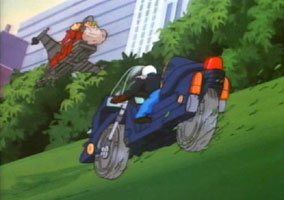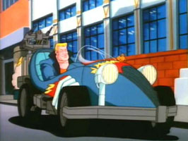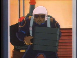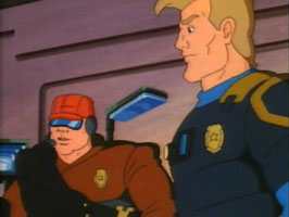 Episode Name: The Case of the Bogus Justice Machines Episode Synopsis: It's a calm day in Empire City and Big Boss is sitting in his car with Squeaky Clean, seemingly watching an innocent couple parking their car...but suddenly a large, lumbering robot wheeled out, grabbed the man, scanned him, chained him to the sidewalk, and informed him that he had broken the "No Parking" rule on this street. This robot acts as Judge and Jury as well, proclaiming him immediately guilty and leaving him there, trapped on the street. As the robot wheels away, Big Boss seems quite pleased and convinced that Empire City will soon be "theirs". We shift to the COPS precinct where Bullet-Proof is filling in the COPS on the new "Instant Justice" program, which has been approved by the City Council. Mace shares his disdain for this new system, but Bullet-Proof tells him to leave his opinions at the door. Back in Empire City, a businesswoman finds herself confronted by one of the "Instant Justice" robots, who informs her that she was jaywalking...somewhere else in the city, a man gets his hat blown off his head, and yet another robot corners him about "littering". Even two kids riding skateboards get nabbed for speeding. It would seem these Instant Justice robots have some bugs to work out...or do they? On another side of town, Berzerko and Ms. Demeanor are making off with bags of gold from one of Empire City's many banks...they slide into their Roadster and Air Speeder vehicles, however the loot is too heavy for Ms. Demeanor to take off with it. The COPS burst onto the scene, it would appear just in time; Mace and Highway immediately give chase, one in a patrol car, and one on a Bluestreak Motorcycle. The two Crooks split up, Berzerko taking the "low road" while Ms. Demeanor takes the high road, and ends up on top of a cross-city train with Highway close behind. Highway chases her through the train tunnel and out onto a grassy hillside, where he skids off the edge on his motorcycle, threatening to plummet down to the city streets below. He activates his ejection seat and ends up on Ms. Demeanor's Air Speeder, but the weight proves to be too much, and the Air Speeder spirals down and crashes back onto the elevated train. While Highway is preparing to bring in Ms. Demeanor, one of the Instant Justice Machines arrives and interrupts him, but to Highway's shock and surprise, the Instant Justice Machine sets her free based on "circumstantial evidence". Enraged, Highway and Sgt. Mace bring this up to Bullet-Proof's attention, who notes that arrests are WAY up on incidental, non-serious crimes while Crooks are getting away with more serious transgressions. Bullet-Proof asks Mace and Barricade to tail Ms. Demeanor, and they find her exiting a local gym, and then they follow her to a rundown corner of Empire City, a corporation named Vetrocon, to be exact. Mace and Barricade arm up and get ready to go see exactly what Ms. Demeanor is doing inside, and what they see is not good. Ms. Demeanor is meeting up with City Councilman Vargas and giving him fistfulls of cash in order to promote these "Instant Justice" machines. Something fishy is in the Empire City Council! Barricade wants to take it slow, but Mace isn't waiting around, and he's ready to bust some heads, so the two go down together, and Barricade slams the door down with his "Mule", so they charge in, ready to arrest the two criminals. But waiting inside are the Instant Justice Machines, and soon, it's Barricade and Mace who are cuffed and helpless. Big Boss and the Crooks come to Vetrocon and speak with Councilman Vargas, trying to encourage him to get rid of the two COPS permenantly, but he doesn't seem willing to go that extra step. Meanwhile, Bullet-Proof is reading a newspapar article that quotes Vargas as saying that COPS are a thing of the past...so he decides they need to pay the councilman a little visit. Barricade, while bound and trapped with Mace begins to turn things around on the Justice Machine standing guard...using a negotiation technique to get in good with the captor. Bullet-Proof and Bullseye don't find Vargas in his office, but they are told by someone there that he's been spending some time at Vetrocon! They take off in the Air Raid chopper, heading right for Vargas and the Crooks. The two COPS turn on their surveillance mikes and hear that Mace and Barricade are captives inside the warehouse. They locate the two with Air Raid's infrared cameras...as the two land, Bullet-Proof puts in a call for backup, and the COPS all charge out of their precinct, heading straight for Vetrocon. The two COPS don't want to wait, so Bullet-Proof kicks down the door and they charge in...but Vargas refuses to be taken without a fight! Up in the control room, he uses the manufacturing equipment to try and take down the COPS, but ends up destroying a bunch of the Instant Justice Machines in the process. Bullet-Proof and Bullseye let their guns do the talking, and take down a bunch of the Justice Machines while Barricade sweet talks their guard into letting them go as well. Suddenly Bullet-Proof and Bullseye are caught by the machines, but the rest of the COPS arrive just in time, rampaging through the rest of the Instant Justice Robots. Vargas is cornered in the control room by Mace and Barricade, and he threatens to blow the whole place up...but Barricade holds Mace back, who just wants to jump him, and negotiates with him, calming him down so they can place him under arrest. Case Closed. |