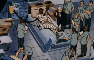 Episode Name: The Case of C.O.P.S. File #1 (Parts 1&2) Episode Synopsis: Empire City is under seige! Big Boss and his nefarious gang of Crooks have the city right where they want it, and there is seemingly nothing that local Law Enforcement can do to stop their reign of terror and crime. Big Boss and his new lead scientist, Dr. Badvibes have designed the most state of the art technical crime machines ever seen, and Mayor Davis decides they need to strike back. As The Crooks work on designing the "Ultimate Crime Machine", the Mayor calls in specialist Baldwin Vess to assist in uncovering the crime spree. But Agent Vess gets in too deep, and shortly, he's tangling with Berzerko and Turbo TuTone. After a high speed chase and the car he's riding it slams into a building, his body is crushed and broken...with only one way to save him. He gets some "upgrades" so to speak, and his body his replaced with the most state of the art cybernetics, and he becomes Bullet-Proof! His time in the hospital inspires him to create the ultimate crime fighting team...the Central Organization of Police Specialists! Empire City's own PJ "Longarm" O'Malley and Donnie "Hardtop" Brooks go across the country to recruit the best of the best for the C.O.P.S. team. They finish recruiting just in time as the Ultimate Crime Machine shows its face! But the C.O.P.S. team swings into action and takes down the Crime Machine and foils the Crooks' plans. Thus, the Central Organization of Police Specialists is born! |