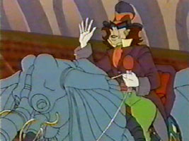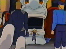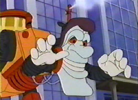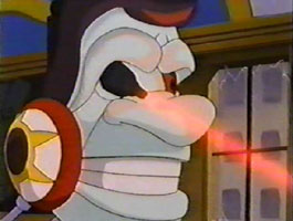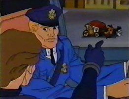 Episode Name: The Case of the Crime Circus Episode Synopsis: At an Empire City bank, a security guard gets a sudden surprise visit from a frightening large white face attached to an advanced technological machine. This clown-themed contraption blasts out the windows and easily breaks into the bank vault, using a laser hidden behind one of its eyes, then grabs stacks of gold bars, and inhales it into its body. The driver is revealed to be Dr. Badvibes and he gets orders from Big Boss to prepare his Circus Wagon for the "Big Heist". Longarm, Hardtop, Bullet-Proof, and Mainframe arrive at the bank as the watchman is taken away, and he immediately beings freaking out, pointing out a large white face that was responsible for the attack. The COPS look at this face that he pointed out and it is an advertisement for a local "Mechanical Circus". It's the only lead they have, so they elect to investigate. Longarm and Hardtop arrive at the Mechanical Circus where a young girl named "Sam" is caught stealing a wallet after a short conversation with her, they spot the "Ringmaster", who bears a striking resemblance to Dr. Badvibes. Hardtop goes off to ask him a few questions. Hardtop begins grilling this "ringmaster" but the questions stop short as Dr. Badvibes operates a trap door, sending Hardtop hurtling downwards! While Longarm looks around, he spots Sam again and gives chase...Sam ends up going down a "Parts" chute and drops down into a basement room where there is more money than she's ever seen before being sorted and piled and organized by robotic machines...but Badvibes and Buzzbomb are there as well! Buzzbomb spots Sam and soon she is captured by robots. Longarm is poking around looking for the evasive young girl, but instead of finding Samantha, he runs into "Roberto" a large, wheeled robot, who sprays sleeping gas at him, knocking him out. Badvibes has all three of them at his mercy in his basement, locked in a cage, and has a brainstorm, revealing his plan to knock off the Gold Depository for the Circus Wagon's "Big Heist" that Big Boss has been demanding. He leaves, leaving Roberto to guard the three prisoners...Samantha reveals that she saw these robots sorting money, so Longarm whips out his dollar bill. Roberto spots this dollar bill and goes after it. When Longarm brings it inside the cage, Roberto blasts the cage with his lasers to go after it, enabling the prisoners to escape. Sam is the only one small enough to fit through the air duct to get out, but her freedom doesn't last long as Badvibes runs across her with the Circus Wagon, scoops her up, and brings her inside. He then orders his clown robots to take care of the COPS. Longarm and Hardtop narrowly avoid death by laser fire from the attack robots, and end up on a platform, raising up and out of their basement prison. They take off in their police car towards the Gold Depository and radio into the precinct where Bullet-Proof and Mainframe are there to take the call. Longarm and Hardtop intercept the Circus Wagon, but prove to be no match for it's mechanical features as it starts tearing apart the cop car like a sardine can. Badvibes is just about to do the same to the COPS inside when Sam grabs an axe inside of the Circus Wagon and rams it into the mechanisms inside. The Circus Wagon shudders, stutters, and collapses in on itself, falling apart completely. Badvibes manages to narrowly escape, but the Circus Wagon (and Badvibes' plan) has been stopped. |