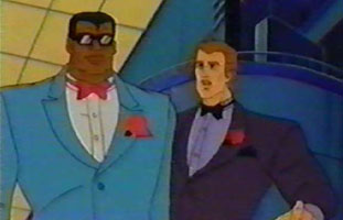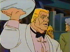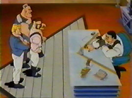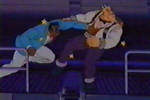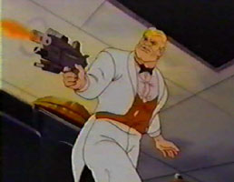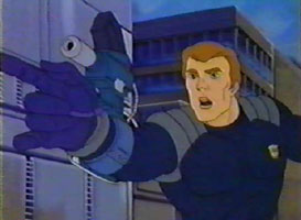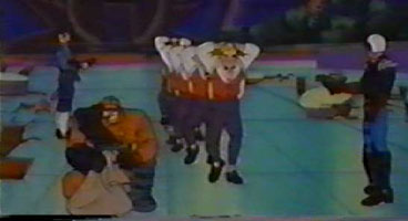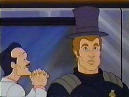 Episode Name: The Case of the Stuck Up Blimp Episode Synopsis: Empire City has a new luxery airliner...a state of the art new blimp called Mountback. With a special fundraiser inviting all of the rich and famous to this one central location, Big Boss and his Crooks have a new target...a seemingly easy target! Hardtop is renting his own tux at a local Empire City establishment preparing for his trip to the fundraiser, when Turbo and Berzerko ransack the place, stealing their own tuxes, so they can blend in with the rich and famous and steal their loot. Hardtop catches them in the act and pursues. However when the Crooks go to the roof, Hardtop finds himself stuck with a fear of heights that will not let him continue after them. Back the Precinct, Bullet-Proof is waiting for Hardtop to arrive so they can attend the charity dinner. Hardtop shows up, but he is obviously bothered by the fact that he couldn't stop the Crooks earlier. Later on, an airship for the Blimp's catering service flies towards the large blimp, but the caterers have been tied up inside, and the Crooks are disguised as them, finding their free ticket to the fundraiser. Bullet-Proof and Hardtop ride an elevator up to the blimp, and Hardtop is definitely still feeling the effects of his fear of heights, even in a simple elevator ride. Inside, the COPS and Crooks mingle with the crew, unaware that they are each on the blimp together, while Whitney Morgan works her magic, trying to get interviews. After Berzerko has a run in with Morgan, the COPS become suspicious and Bullet-Proof and Hardtop move in. The corner Berzerko in the kitchen, and are greeted with gunfire, but they get the better of him, collapsing a large ice statue on top of him. However, the other Crooks are soon busting in! Hardtop and Bullet-Proof quickly find themselves trapped in the meat freezer. The Crooks set out to complete the heist while Bullet-Proof rips free from the ropes and immediately radios in to the COPS HQ. Longarm, Highway, and Sgt. Mace answer the call and immediately depart for the blimp. Bullet-Proof takes off after Rock Krusher (who is trying to cut the blimp loose) and orders Hardtop to lock the platform into place once the COPS arrive...but Hardtop is hit with his fear of heights. Bullet-Proof clashes with Rock Krusher up top, trading blows, but ends up going over the railing, narrowly grasping a platform, barely saving his own life. Down below, Berzerko is getting ready to escape, thanks to Turbo who has approached in the catering airship. He tosses Whitney Morgan's video camera robot through a window, which just happens to be right over where Bullet-Proof is hanging on for dear life. He tries to take down Berzerko, but collapses from exhaustion...meanwhile, Hardtop is able to overcome his fear of heights, and with the help of Longarm's power cuff, locks the platform in place. He takes off after Rock Krusher while Longarm, Highway, and Sgt. Mace run off to round up the rest of the gang. The three COPS break into the main blimp, using all sorts of unusual tactics to take down the gun-toting Crooks inside, while Berzerko is running off with Whitney Morgan. Berzerko realizes he has forgotten to grab the loot, so he scoops up the bag as he runs to meet Turbo in the airship. He leaps to safety as Whitney is left hanging off of one of the blimp ledges. Hardtop sees her there and bravely jumps down to the platform to rescue her, not noticing Rock Krusher charging from behind! Thankfully, Longarm sees him from up above, and snares him with his power cuff. The COPS have broken up the heist, Hardtop has conquered his fear, and Berzerko, thinking he got off with a bag of loot soon finds that instead, he has escaped with a huge doggy bag he had gotten for Rock Krusher! No jewels or cash...just sandwiches. Better luck next time! |