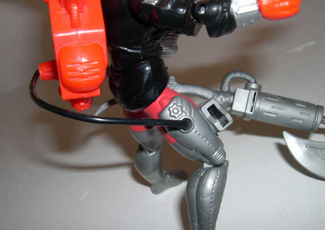 The colors are okay, I suppose...black and red works for pretty much anything, and it makes sense for a firefighter, but the shade of red is somewhat bright and the black kind of washes out a lot of the detail throughout his jacket. The silver looks somewhat funky, especially with so much of it on his legs, and doesn't really fit the rest of the figure.