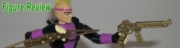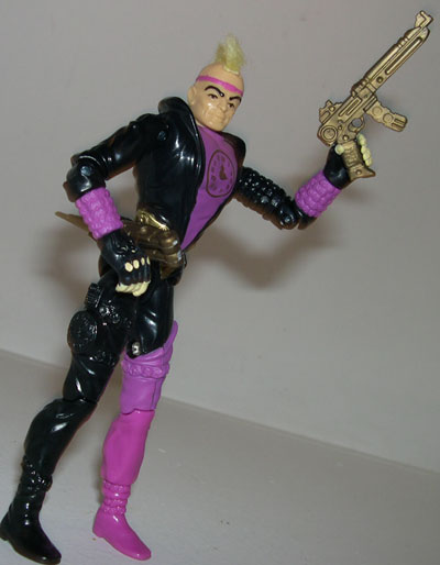 First of all, the mold is overly skinny and gives Koo Koo kind of a punkish look to him, which I think really works for a member of the Crooks. The punk look is also further helped by the leather jacket sculpting, with a series of straps around his arms and those 80's syle fingerless gloves. All of this stuff combines together and looks very nice, I think. It gives him a more modern (although still dated) look that breaks him off from the traditional 30's style gangster that a lot of the other Crooks sported. In fact, throughout series 1, this old school look was rampant throughout, but here in series 2, everyone looks a LOT more modern, a really serious stylistic change. Between Hyena, Bullit, Koo Koo, and Nightmare, you have a series of futuristic, state of the art Crooks that seem a lot more threatening than those black and white film style criminals.