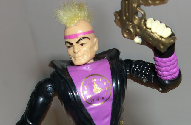 Koo Koo's colors are interesting, mostly black leather, which fits in with his punk rock roots pretty nicely. He's got the same shade of purple/pink that Hyena has on his figure as well, which kind of ties the two together and makes them work well as a team, in my little C.O.P.S. universe...this is another thing that I think sort of ties Koo Koo to the Pranksters more than the Crooks. The figure also has some well placed gold on him, too, giving him some little flashes of detail like the clock on his chest and the v-shaped belt across his waist. A nice little assortment of different colors that really blends together nicely.