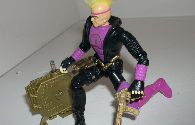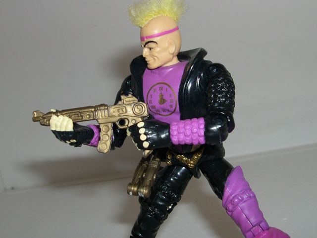 Koo Koo's accessories aren't too bad either. I'm not wild about his clock-themed "time bomb", but I really love his little submachine gun and butterfly knife that hooks through the tab on his hip. The gun and the blade are definitely the cooler of the accessories, and again, indicate some more punk roots, which is cool with me,