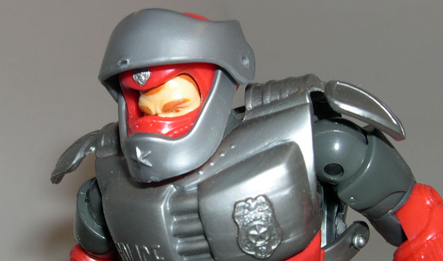 Powderkeg's colors are pretty straight forward, but also very cool. A dark gunmetal gray adorns his uniform, which I love, and surprisingly it compliments the red of his gloves and boots perfectly. The little touches of silver on the straps on his legs are nice additions, too, and again, even without his elaborate armor, Powderkeg is a respectable figure.