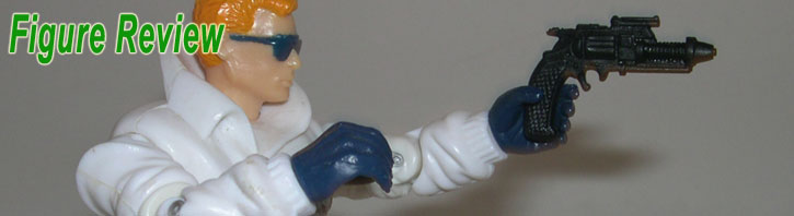 As for weapons, he doesn't have much, but what he has makes sense and is executed very well. He comes with a simple rubber holster that snaps around his waist and holds a very, VERY cool revolver-format pistol. Possibly one of my favorite little pistols in the entire series of toys. That was one thing that Hasbro did really well with this line; they took the familiar revolver format and really designed some incredibly cool looking pistols from it. Highway, Heavyweight, and Roadblock here got the best of them, I'd say.
