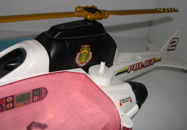 Please note - these images are placeholders and are currently of an incomplete Air Raid helicopter. It should have a siren under the rear tail, a machine gun in the front, between the two cockpits, and obviously, the roll of caps will go on the peg and feed into the mechanism underneath the rotors. I wanted to get this page up, but as soon as I get pictures of a complete Air Raid, I will post them in here.