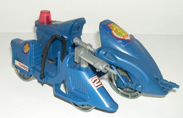 My one minor complaint on the vehicle probably stems from the tires...namely, there aren't really any tires, just gray/silver rims. This is a minor thing, and it may actually help in the speed factor, but it just doesn't look quite right. Still, for one the smaller vehicles, this one isn't so bad at all. It can be had for quite cheap as well, even MIB, and would definitely be worth consideration to give some of those C.O.P.S. who don't have their own transportation.