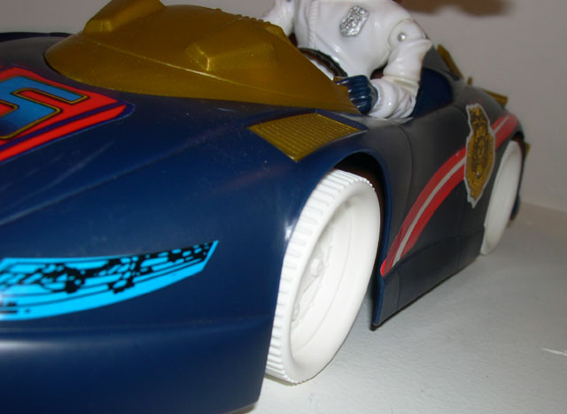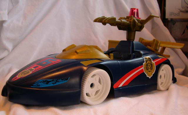 So far in the C.O.P.S. toyline up to this point, there were plenty of attack vehicles, but patrol cars were pretty much non-existent. The Ironsides was a powerhouse with lots of defense and offensive firepower, the Bluestreak cycle, which is quick, but way to vulnerable. But at this point nothing can really stand up against vehicles like the Roadster (speed-wise, anyway). Sure the Bluestreak or Highway's Air Scooter can catch up to the Roadster, but whip those quad cannons around, and the story is completely different. The C.O.P.S. needed a high speed, slightly armored, powerhouse "chase car" that could fill in that hole.